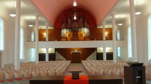 My dad grew up worshiping in a Reformed congregation in the town of Neede, Holland. He referred me some time ago to their website, where there are pictures of their transformed sanctuary. The traditional worship space of that sanctuary has been shifted to a very modern look. It may not be everything we would like to have (it retains a very free church simplicity) but it helps to get the imagination moving…