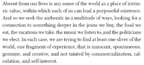 In his book The Authenticity Hoax, Andrew Potter argues that the search for authenticity in modern western culture has in fact taken a rather superficial turn. He writes: